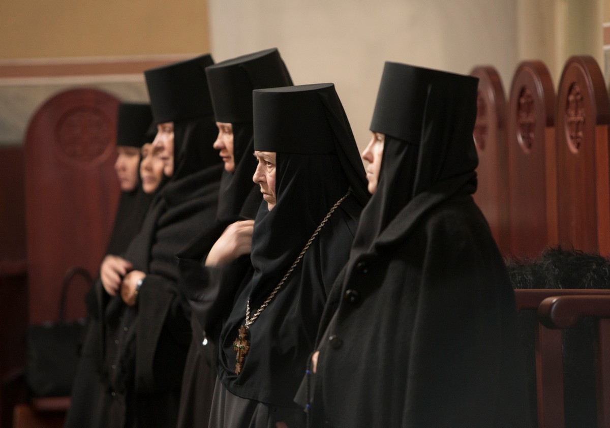 За богослужением молились Заместитель Председателя Синодального отдела по монастырям и монашеству, настоятельница Зачатьевского ставропигиального женского монастыря Москвы игумения Иулиания (Каледа) и игумении ставропигиальных обителей.
