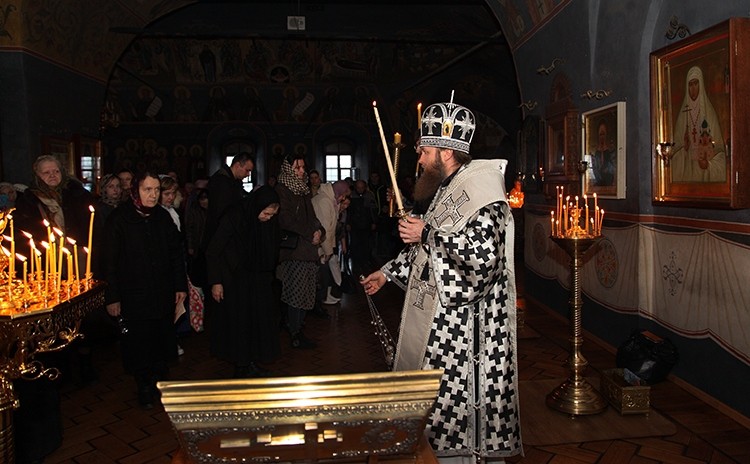 22 марта 2015 года, в 4-ю Неделю вечера Великого поста, наместник Новоспасского ставропигиального мужского монастыря, викарий Святейшего Патриарха Московского и всея Руси епископ Воскресенский Савва совершил пассию с чтением акафиста Страстям Христовым в храме Покрова Божией Матери Новоспасской обители.