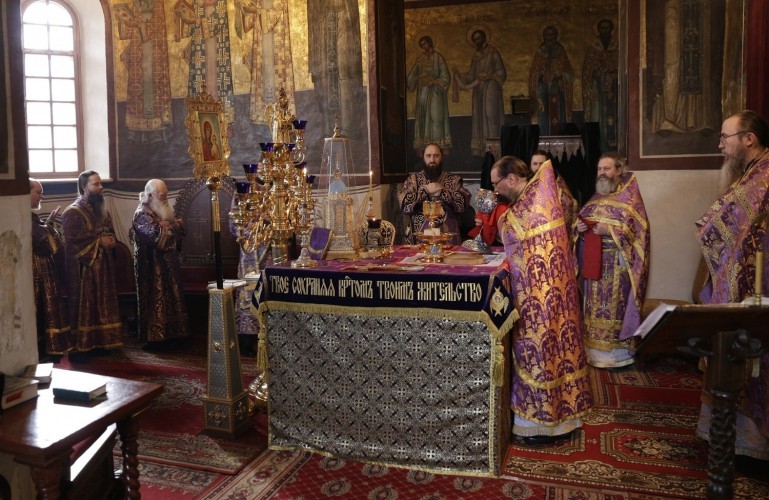 В Великий Четверток вся монастырская братия участвуют в богослужении, молятся и причащаются Святых Христовых Таин, а также многочисленные прихожане и гости обители – причастников насчитывалось около двухсот человек.
