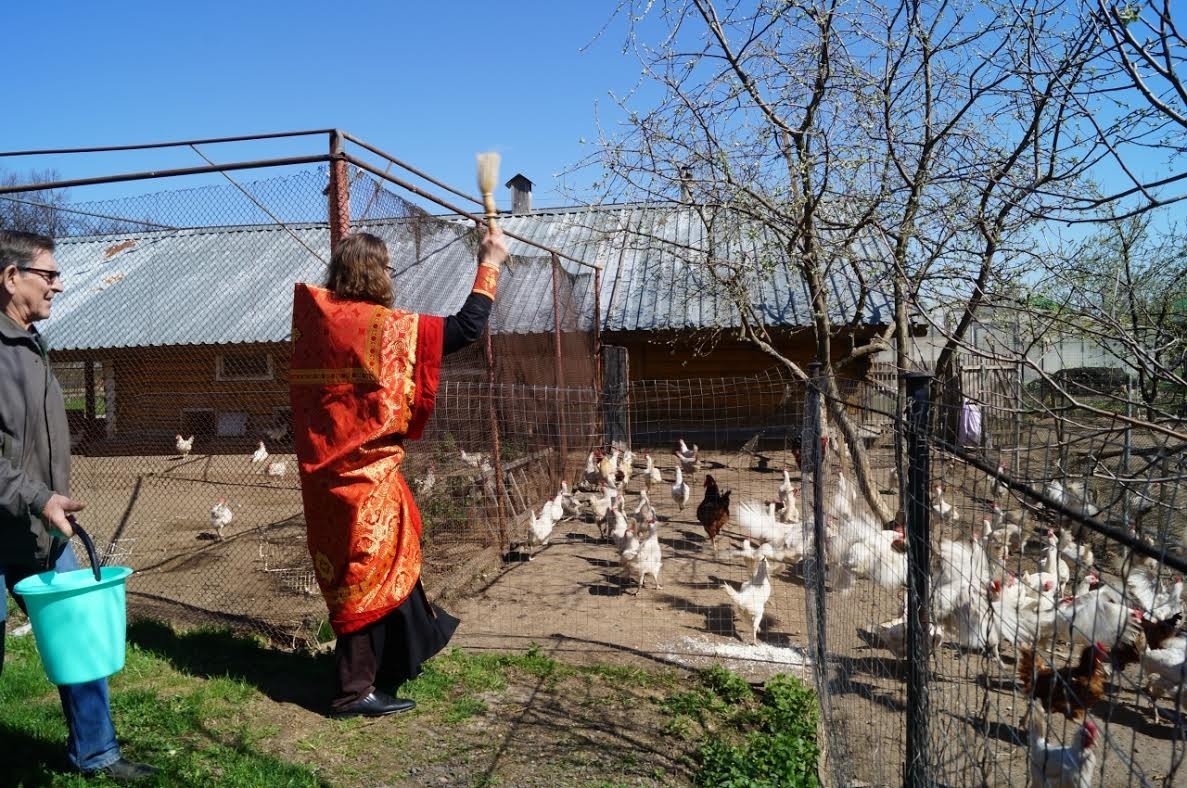 По завершении молебна священнослужители, сестры и прихожане обители крестным ходом с молитвенным пением обошли монастырские поля, огороды, теплицы, пчельник, коровник, курятник и сад. Поля и животные были окроплены святой водой с молитвой о даровании земле плодородия, животным – здоровья и плодовитости, а также об избавлении от вредителей и стихийных бедствий.