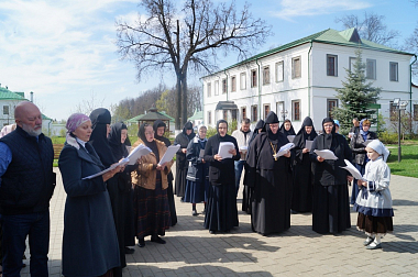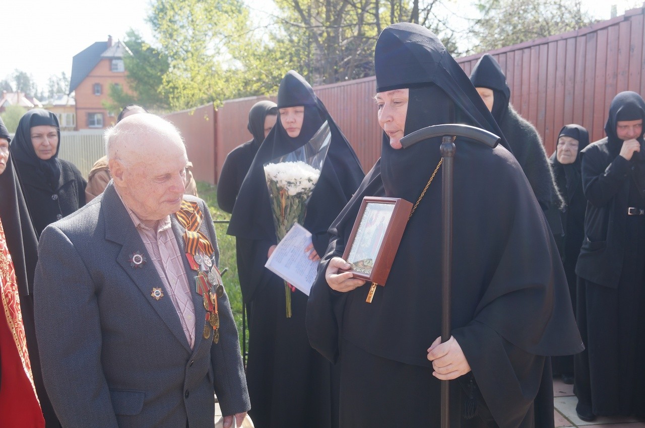 По окончании крестного хода на улице перед храмом все желающие приняли участие в импровизированном концерте: все вместе с настоятельницей монастыря игуменией Марией (Солодовниковой) и сестрами хором пели военные песни. Многие лично подходили к ветерану и благодарили за Победу, в которую он внес свой немалый вклад.