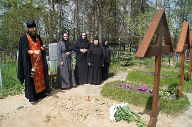 Посетили сестры и монастырское кладбище, где похоронена новопреставленная монахиня Александра, бывшая блокадница, которая совсем немного не дожила до дня Великой Победы. У могил почивших сестер была отслужена лития и возложены цветы.