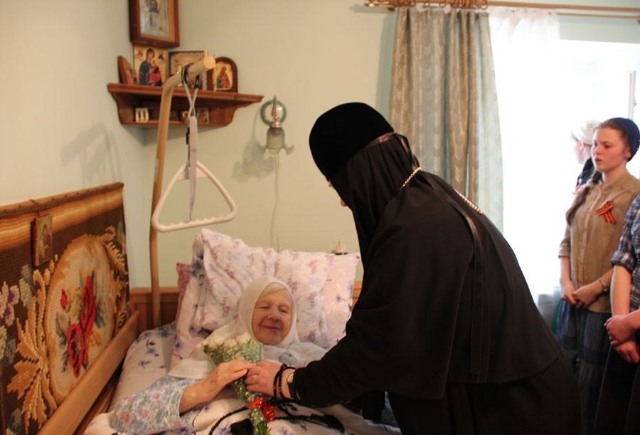 В обители дети вместе с настоятельницей монастыря игуменией Олимпиадой (Барановой) преподнесли подарки престарелым сестрам, участницам Великой Отечественной войны и труженицам тыла, и исполнили для них песни военных лет