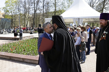 В своем выступлении архимандрит Савва (Фатеев) поздравил всех ветеранов со столь значимой в истории нашей страны датой – с праздником 9 мая, с 70-летием Великой Победы. Пожелал всем здравия душевного и телесного, долгих лет жизни: