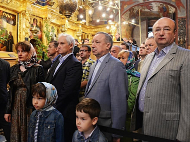 За богослужением присутствовали: помощник Президента РФ А.Р. Белоусов; помощник Президента РФ И.С. Левитин; полномочный представитель Президента РФ в Центральном федеральном округе А.Д. Беглов;Председатель Комитета Государственной Думы ФС РФ по делам СНГ, Евразийской интеграции и связям с соотечественниками Л.Э. Слуцкий;Заместитель Председателя Московской областной Думы Н.Ю. Чаплин; глава Сергиево-Посадского района Московской области С.А. Пахомов;Председатель Совета депутатов Сергиево-Посадского района В.Н. Коротков; глава города Сергиев Посад В.В. Букин.