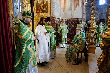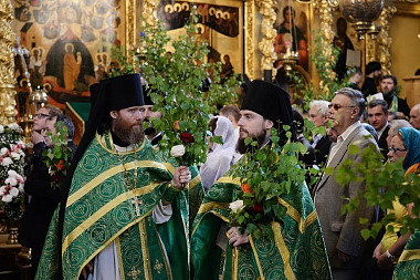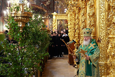 По окончании Литургии Святейший Владыка совершил великую вечерню праздника Пятидесятницы с чтением коленопреклонных молитв.