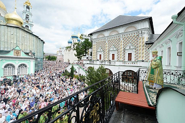 По завершении богослужений духовенство, прихожане и многочисленные паломники собрались на соборной площади Лавры. С балкона Патриарших покоев Святейший Патриарх Московский и всея Руси Кирилл обратился к верующим с Первосвятительским словом.