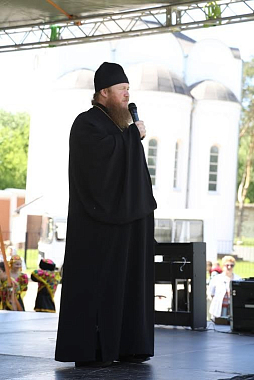 В своем приветственном слове игумен Варфоломей поздравил всех гостей с днем сошествия Святого Духа, пожелал всем Божиего благословения, а также поздравил детей с началом летних каникул и Днем защиты детей. Наместник обители пожелал всем радости, мира и благословил начало праздника.