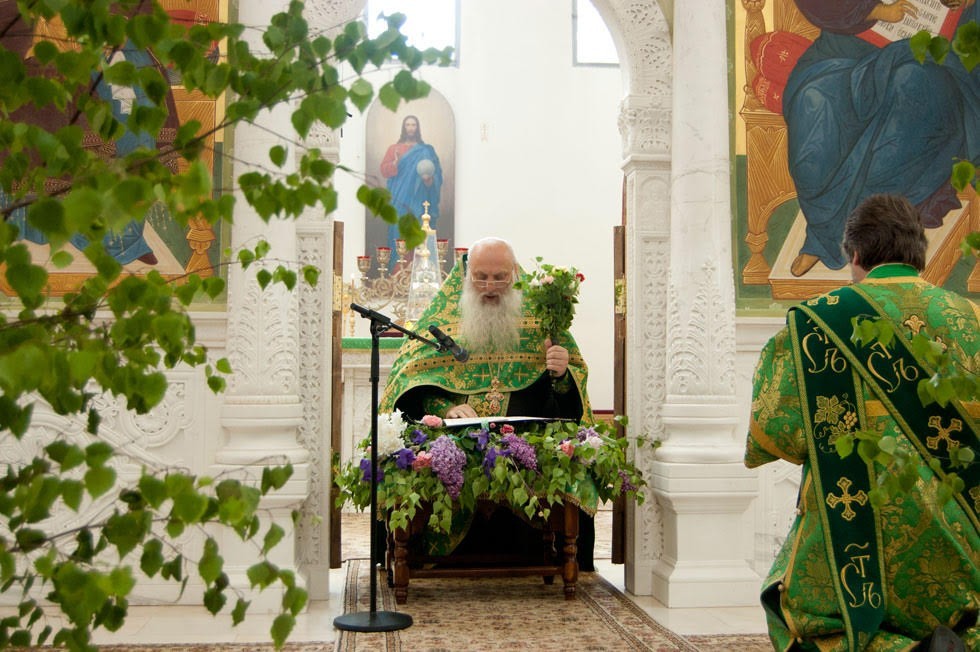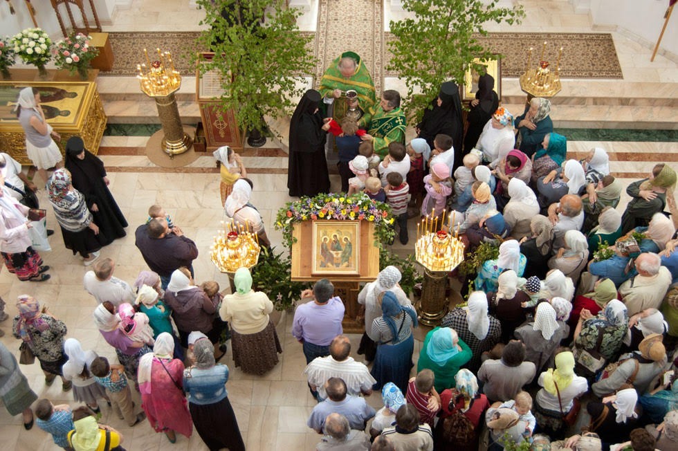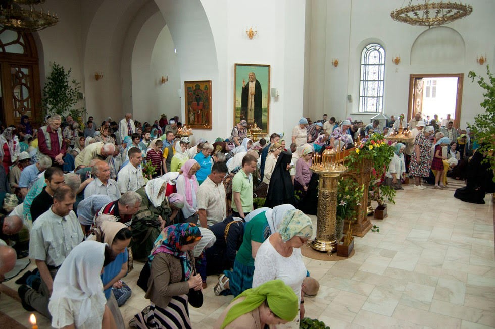 По окончании Литургии была отслужена великая вечерня с чтением коленопреклонных молитв ко Святой Троице.