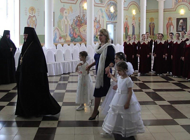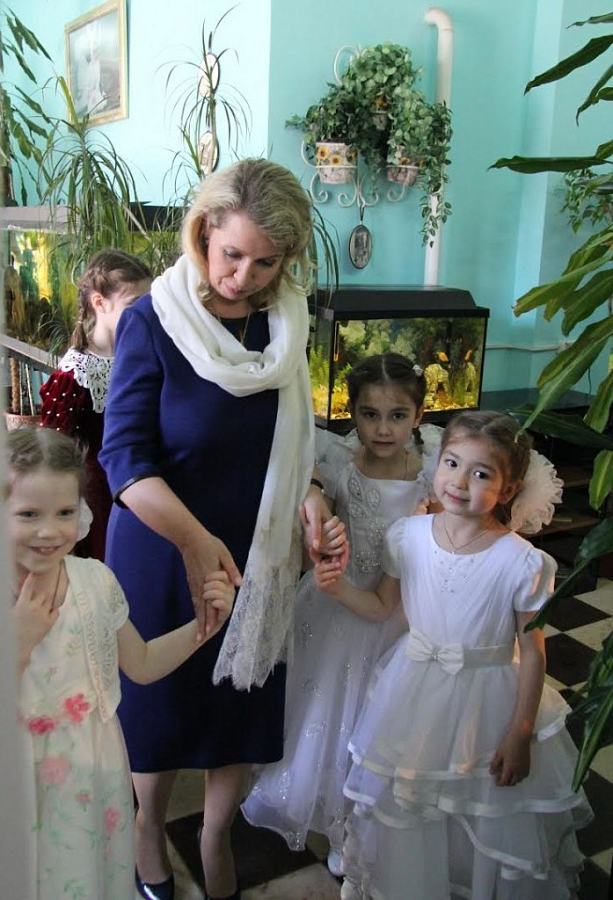 В главном соборе обители был отслужен торжественный благодарственный молебен, по окончании которого Светлана Владимировна подарила монастырю икону Святой Троицы. Затем дети показали гостье свой дом – здание приюта, где они живут и учатся.