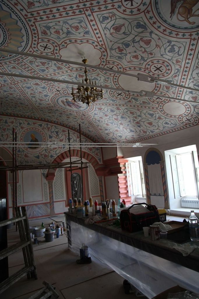 В Новоспасском ставропигиальном мужском монастыре в Никольском храме, возведенном в середине XVII века, заканчивается роспись трапезной части.
