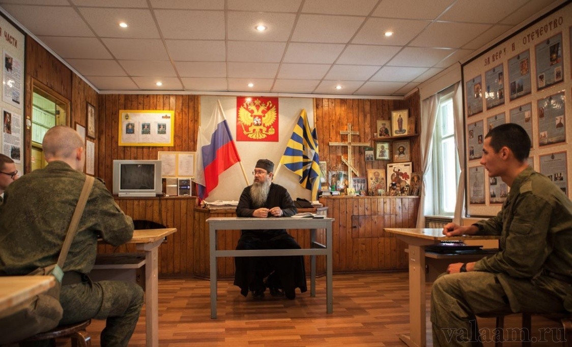 В 1995 году в соответствии с соглашением о сотрудничестве Русской Православной Церкви и Министерства обороны РФ было разрешено прохождение воинской службы трудникам Валаамского монастыря призывного возраста в военной части ПВО, дислоцированной на Валаамском архипелаге. Для укомплектования подразделения в монастырь принимаются православные юноши со всей России, которые не хотели бы прерывать литургической жизни на время службы в армии и для этого согласны нести монастырские послушания до призыва в воинскую часть.
