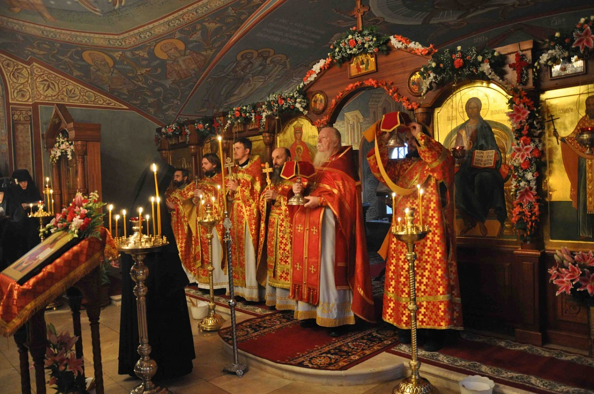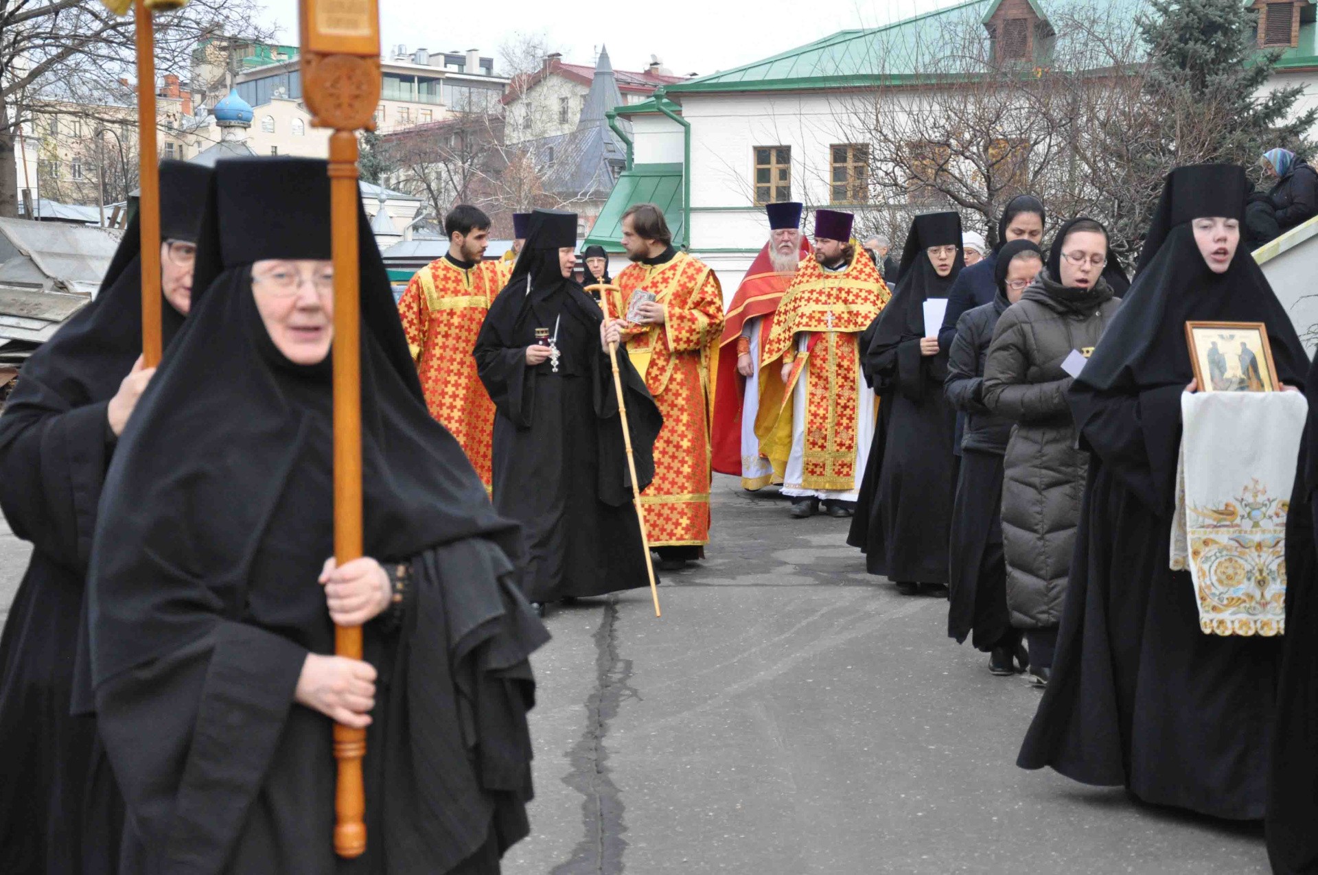 Затем был совершен крестный ход вокруг монастырского храма Сошествия Святого Духа. По завершении крестного хода была совершена заупокойная лития с поминовением игумении Мариамны (Елизаровой, + 1596) и игумении Мастридии (Роттенберг, +1863), почивших в этот день.