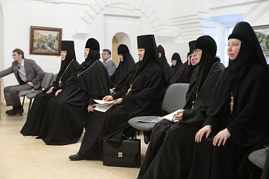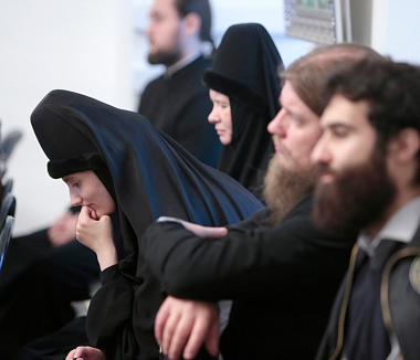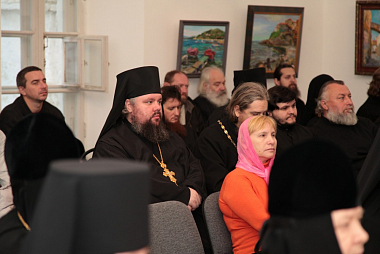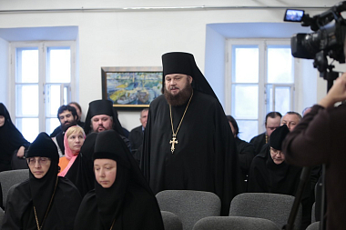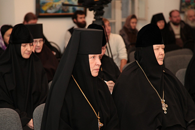 В обители, уделяющей особое внимание вопросам образования, собрались игумены и игумении, насельники ставропигиальных монастырей, миряне, желающие пополнить свои знания. Возглавил заседание Председатель Синодального отдела по монастырям и монашеству Высокопреосвященный Феогност, архиепископ Сергиево-Посадский.