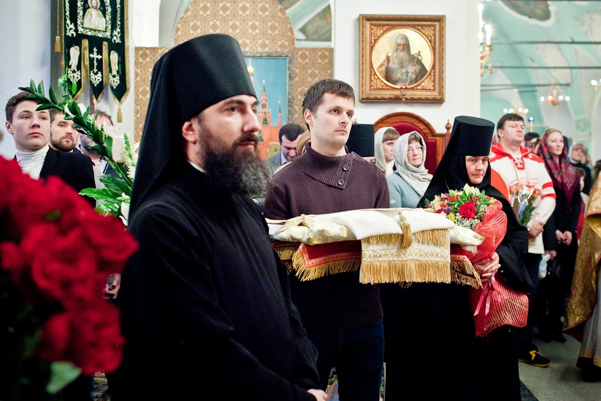 Высокие гости прибыли в обитель святителя Петра по случаю празднования 40-летия со дня рождения и 15-летия священнической хиротонии наместника монастыря и ректора Российского православного университета игумена Петра (Еремеева).