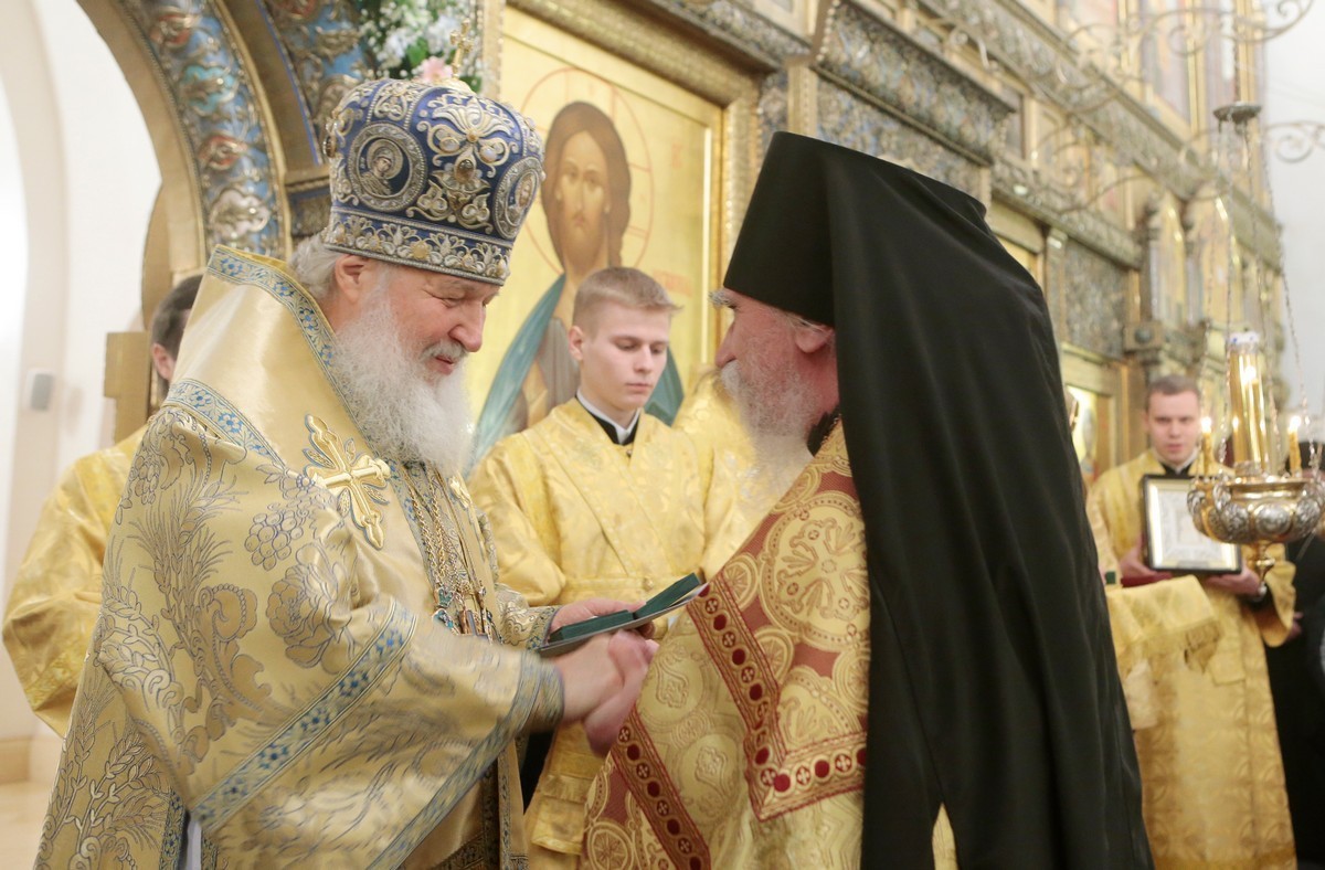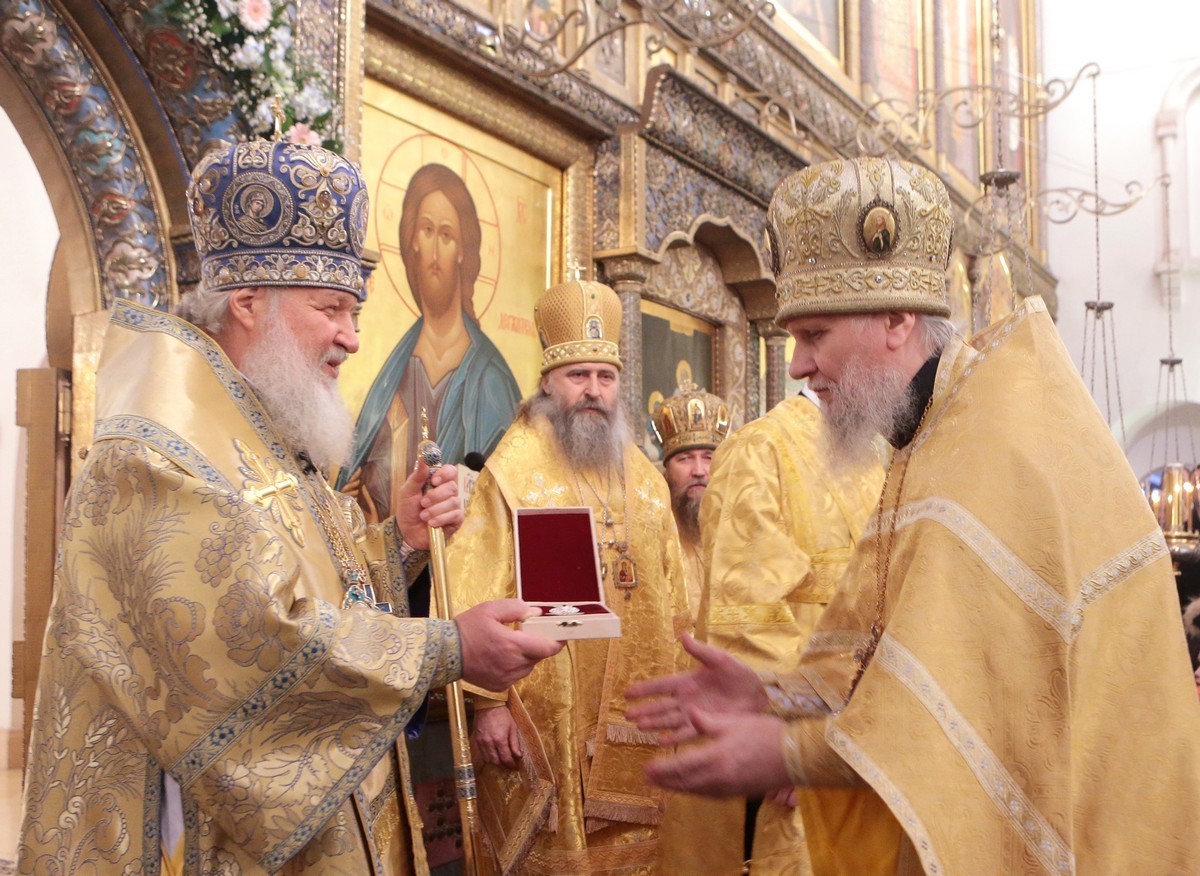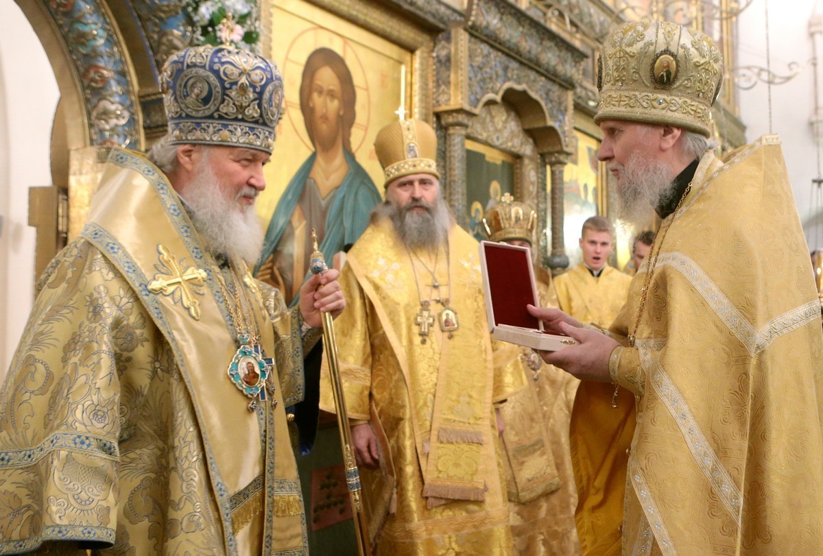 Затем Предстоятель удостоил ряд лиц высоких церковных наград: