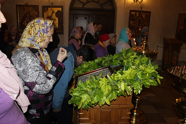 31 декабря была отслужена вечерня с акафистом преподобному Илии Муромцу, Печерскому, а 1 января - Божественная литургия.