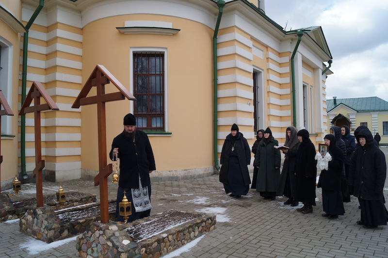 Умерла матушка Алипия (в схиме, принятой уже после закрытия монастыря, в изгнании, – Евгения) 18 марта 1942 года. Ее похоронили на участке сгоревшей дачи, поставили крест без надписи, обнесли могилу деревянной оградой. Изредка могилу навещали бывшие аносинские сестры – чья она, не знал никто из местных жителей. В конце 1980-х годов с помощью монахов Троице-Сергиевой лавры удалось заменить деревянную ограду металлической, еще раньше крест пожертвовала пюхтицкая игумения Варвара. В 2001 г. честные останки исповедницы схиигумении Евгении были перенесены в Аносину пустынь и погребены у стен Троицкого храма.