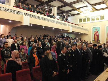 Открывая вечер, наместник Данилова ставропигиального мужского монастыря г. Москвы архимандрит Алексий (Поликарпов) напомнил гостям и зрителям, что сын великого князя Александра Невского святой благоверный князь Даниил Московский вошел в историю как правитель, верно служивший своему Отечеству и народу. Князь Даниил всегда стремился мирным путем разрешать конфликты, и именно при нем Москва стала великим княжеством. Сам же Даниил принял схиму в конце жизни и завещал похоронить себя не в Кремле, где были погребены все его родственники, а на монашеском кладбище основанной им обители. Отец Алексий также сказал, что именно сейчас, когда чередой конфликтов проходят перед нами события последних дней, Небесный Покровитель града Москвы и Даниловой обители слышит наши молитвы о мире на русской земле и помогает принимать мудрые решения.