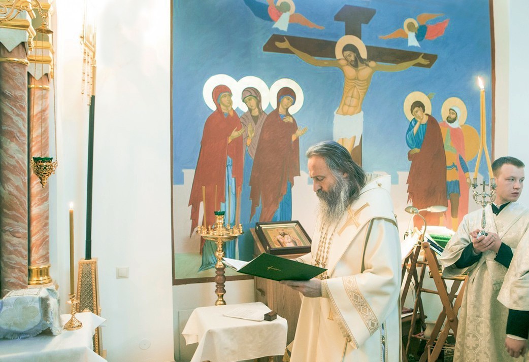 По окончании богослужения владыка Феогност обратился к сестрам во главе с настоятельницей монастыря игуменией Марией, прихожанам и паломникам со словом проповеди: