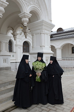 В соборе молились настоятельница Зачатьевского монастыря игумения Иулиания (Каледа), насельницы обители, многочисленные паломники.