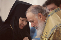 Сегодня матушка игумения празднует 20-летие своего иноческого пострига. Я хотел бы, матушка, благословить вас этой иконой Божией Матери "Скоропослушница", с тем чтобы под Ее державным Покровом проходила Ваша жизнь и Ваше служение, а также жизнь всех сестер и тех, кто наполняет этот Божий храм.