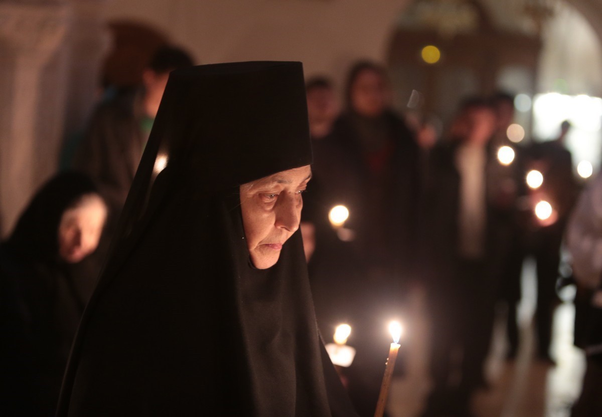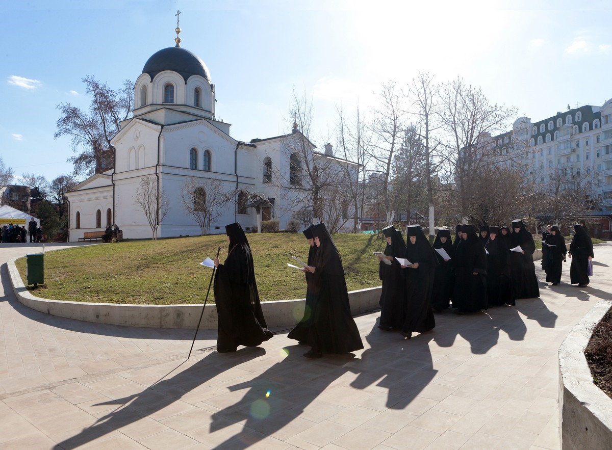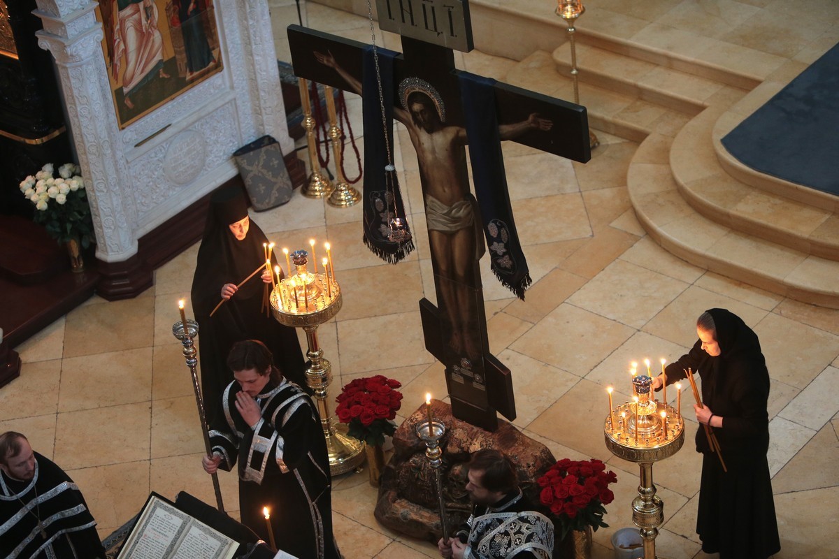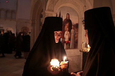 17 апреля, в Великий четверг Страстной седмицы, в Зачатьевском ставропигиальном женском монастыре в Москве с 17.00 совершались малое повечерие и утреня Великой пятницы с чтением Страстных 12-ти Евангелий.