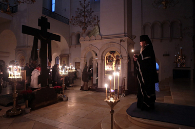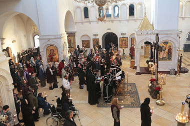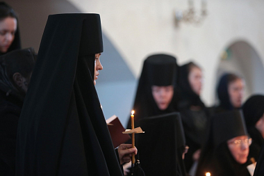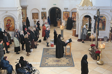Вечернее богослужение совершалось всем духовенством обители во главе с протоиереем Сергием. На богослужении присутствовала настоятельница Зачатьевского монастыря, Заместитель Председателя Синодального отдела по монастырям и монашеству игумения Иулиания (Каледа) с сестрами обители.