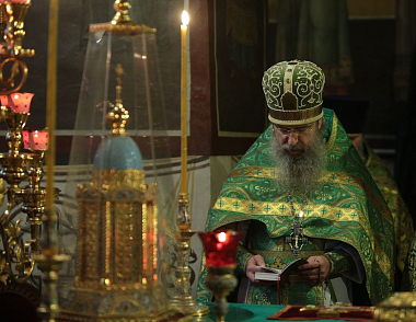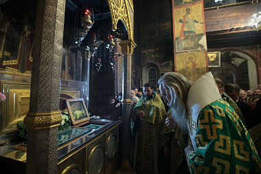 Затем владыка Феогност обратился к собравшимся с архипастырским словом, в котором восхвалил подвиг преподобных, уподобивших себя Христу в служении Богу и ближним.