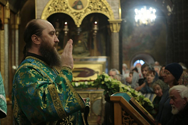 По заамвонной молитве было совершено славление прп. Савве Сторожевскому и архимандрит Павел прочитал молитву празднуемому святому.