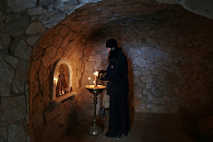 Проповедь перед Причастием произнес скитоначальник монастырского скита прп. Саввы игумен Феодосий (Чинадель).