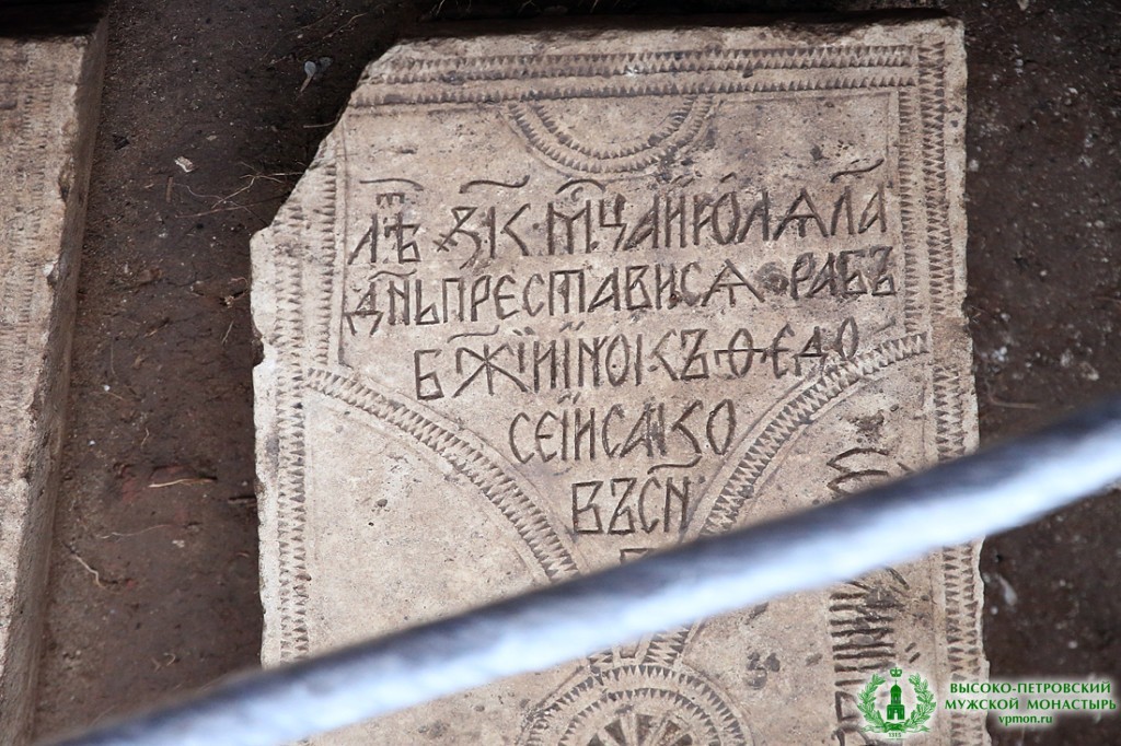 Археологические исследования уже позволили обнаружить участок неповрежденного кладбища с исключительно ценным комплексом надгробий. В центре раскопа были найдены две плиты начала XVI века с очень красиво нарезанным текстом – датой смерти 31 июля 1512 года (день памяти преподобного Евдокима).