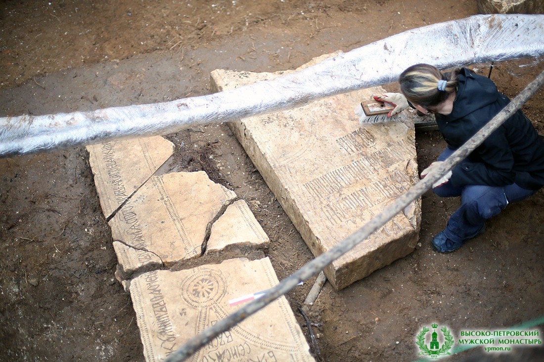 В монастыре и ранее встречались плиты начала XVI столетия, переоформленные в середине века (что ранее было трудно доказать). Совмещением над одной могилой ранней и поздней плиты с одинаковым текстом – первый случай в истории некрополей Москвы, он дает возможность взглянуть на историю захоронений в древней столице в новом ракурсе.