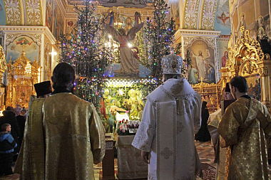 По окончании Литургии был отслужен праздничный молебен, после которого владыка Александр поздравил настоятельницу монастыря игумению Рафаилу (Хильчук) с сестрами и всех богомольцев с настоящим праздником.