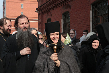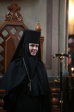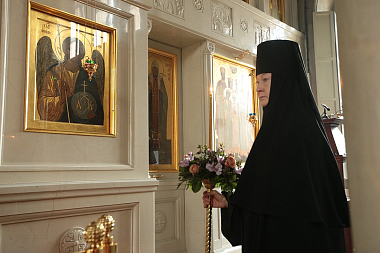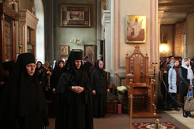 По окончании богослужения архиепископ Феогност поздравил игумению Ксению со второй годовщиной хиротесии и передал ей, а также духовенству, сестрам и прихожанам обители поздравление от Святейшего Патриарха по случаю престольного праздника обители.