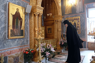 7 августа 2018 года, в день памяти праведной Анны, матери Пресвятой Богородицы, и святых жен Олимпиады, диакониссы, и Евпраксии-девы Тавеннской, в Покровском Хотькове ставропигиальном женском монастыре молитвенно отметили день тезоименитства настоятельницы обители игумении Олимпиады (Барановой).