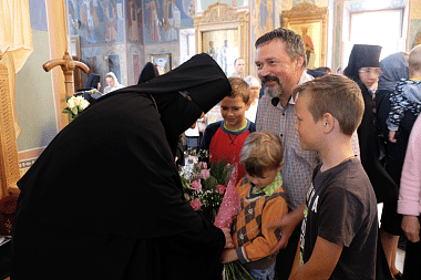 По окончании богослужения архиепископ Феогност передал игумении Олимпиаде поздравление с днем тезоименитства от Святейшего Патриарха Московского и всея Руси Кирилла.