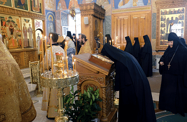 В этот день Божественную литургию в монастыре возглавил председатель Синодального отдела по монастырям и монашеству архиепископ Сергиево-Посадский Феогност, наместник Свято-Троицкой Сергиевой лавры.