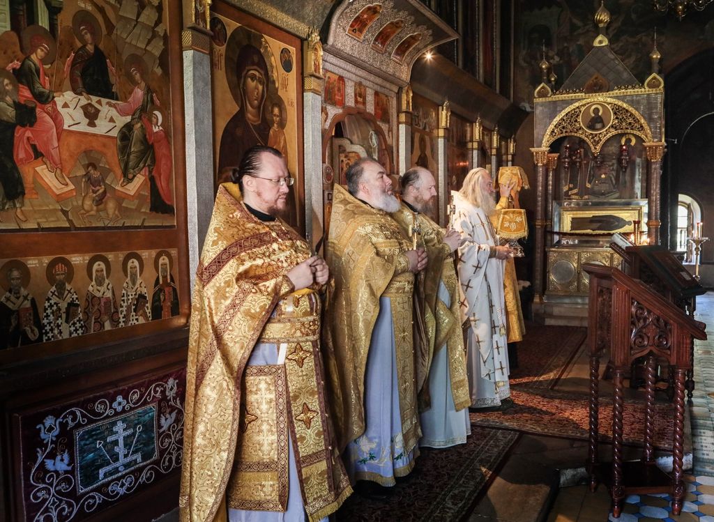 В монастырском соборе Рождества Пресвятой Богородицы Его Высокопреосвященству сослужили наместник обители архимандрит Павел (Кривоногов) с братией в священном сане.