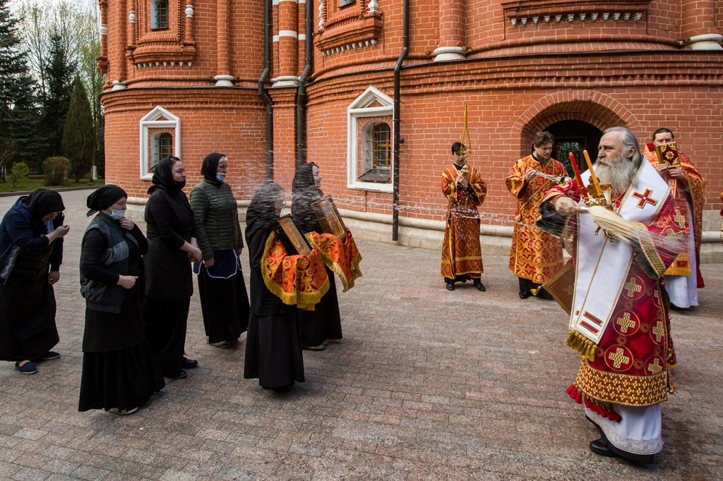3 мая 2020 года, в Неделю 3-ю по Пасхе, праздник святых жен-мироносиц, председатель Синодального отдела по монастырям и монашеству архиепископ Каширский Феогност совершил Божественную литургию на подворье Покровского ставропигиального женского монастыря в с. Марково.
