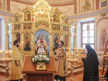 В этот день в сослужении монастырского духовенства Его Высокопреосвященство совершил Божественную литургию в главном алтаре Троицкого собора, первоначально освященном самим святителем Филаретом Московским.