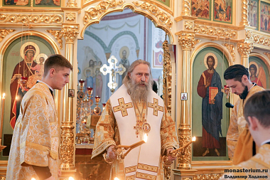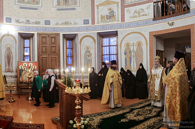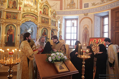 По окончании богослужения архиепископ Феогност преподал поздравление с праздником и благословение Святейшего Патриарха Московского и всея Руси Кирилла настоятельнице обители игумении Марии (Солодовниковой) с сестрами, паломникам и всем прихожанам обители.