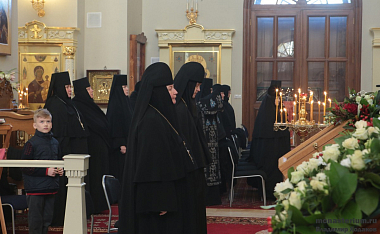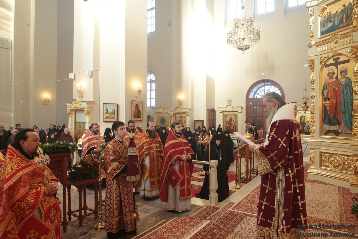 По окончании Литургии владыка Феогност передал игумении Екатерине поздравление Патриарха Московского и всея Руси Кирилла с днем тезоименитства. Ранее, 5 декабря, настоятельнице Кресто-Воздвиженской Иерусалимской обители был вручен орден преподобной Евфросинии, великой княгини Московской, III степени.