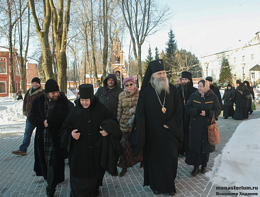 За богослужением молились: настоятельница Борисоглебского Аносина ставропигиального женского монастыря игумения Мария (Солодовникова); настоятельница Казанской Амвросиевской ставропигиальной женской пустыни игумения Сергия (Щербакова); настоятельница Свято-Троицкого Стефано-Махрищского ставропигиального женского монастыря игумения Елисавета (Жегалова); настоятельница Серафимо-Знаменского женского скита игумения Иннокентия (Попова); сестры монастыря; глава Ленинского района Московской области О.В. Хромов и глава Домодедовского района Московской области А.В. Двойных. На праздник приехали гости из г. Казани, г. Печор, г. Краснодара, Молдовы, Белоруссии и Украины.