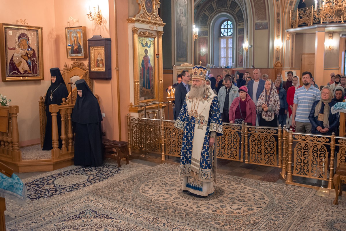 За Божественной литургией Высокопреосвященнейшему владыке сослужили заместитель председателя Синодального отдела по монастырям и монашеству, настоятель Московского подворья Троице-Сергиевой лавры архимандрит Стефан (Тараканов), клирик Покровского Хотькова ставропигиального женского монастыря протоиерей Николай Ляхов, клирики Покровской обители.