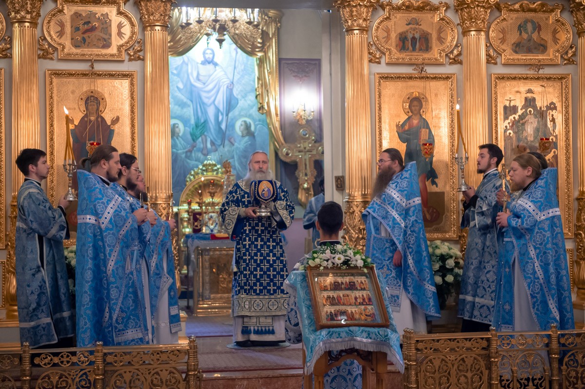 Настоятельница Покровского монастыря игумения Феофания, сестры обители, воспитанницы детского приюта при Покровском монастыре молились за Божественной литургией и причащались Святых Христовых Тайн. На богослужении также молитвенно присутствовали прихожане обители и паломники.