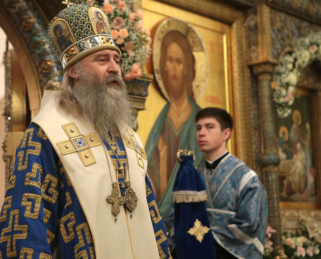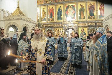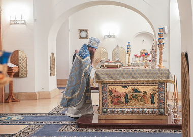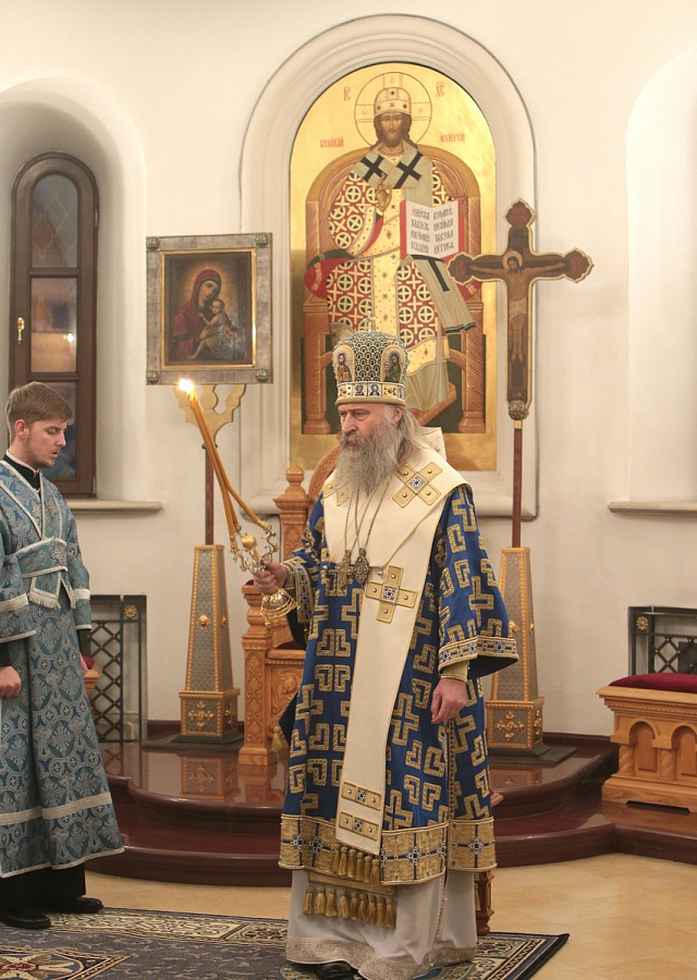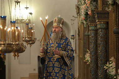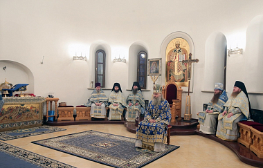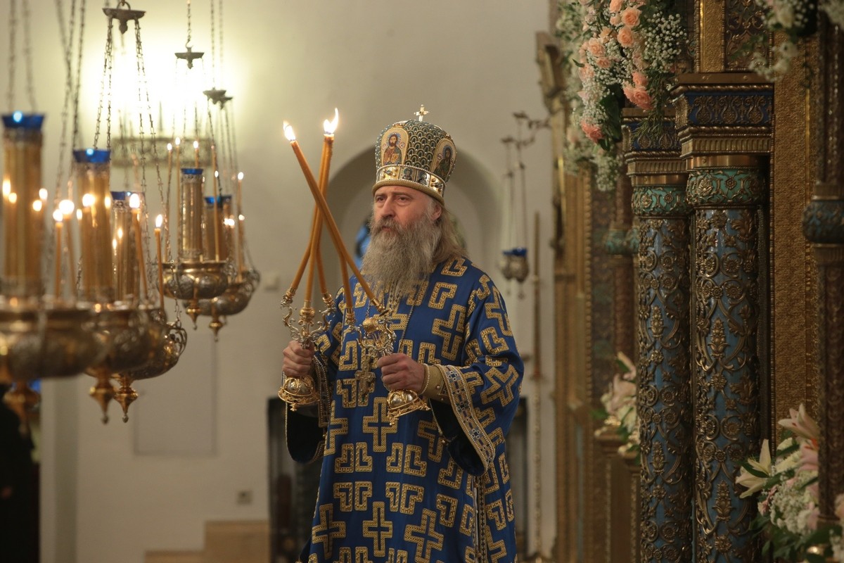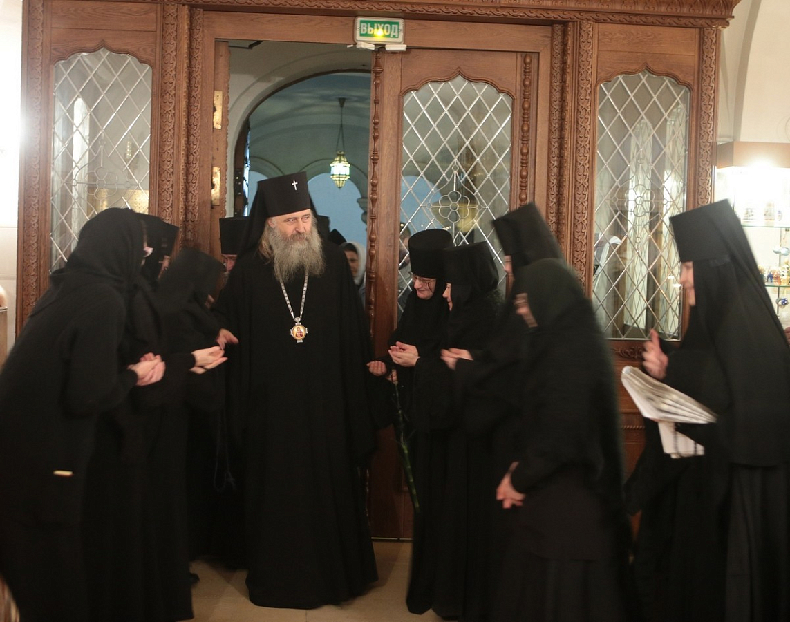В этот день праздничную Божественную литургию в главном соборе обители возглавил Председатель Синодального отдела по монастырям и монашеству архиепископ Сергиево-Посадский Феогност.