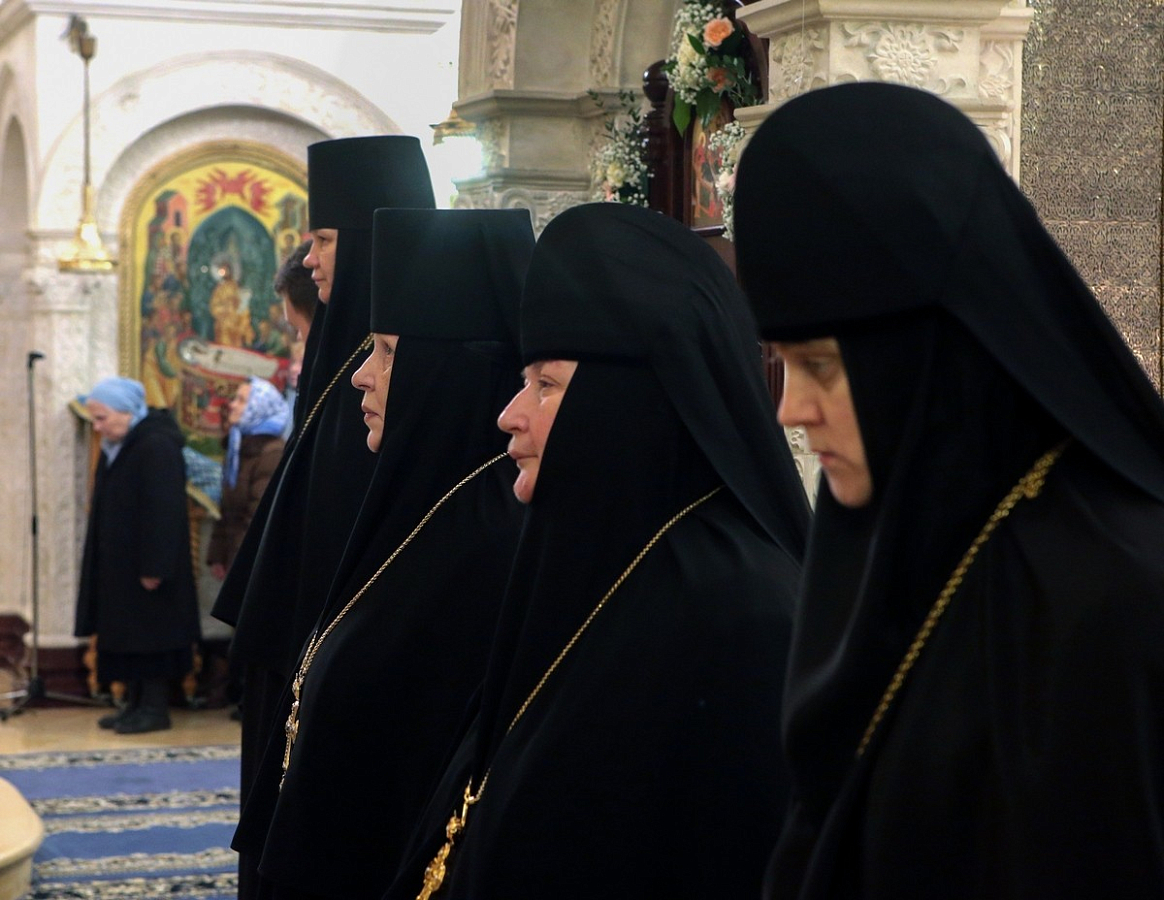 За Литургией молились: наместник Андреевского ставропигиального мужского монастыря Москвы епископ Дмитровский Феофилакт; Заместитель Председателя Синодального отдела по монастырям и монашеству, настоятельница Зачатьевского ставропигиального женского монастыря Москвы игумения Иулиания (Каледа) с сестрами; наместники и игумении ставропигиальных монастырей Русской Православной Церкви; многочисленные прихожане и гости обители.
