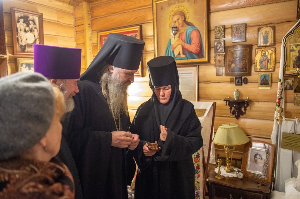 В этот праздничный день матушка игумения представила Высокопреосвященнейшему владыке новый монастырский музей, посвященный святой праведной блаженной Матроне Московской.