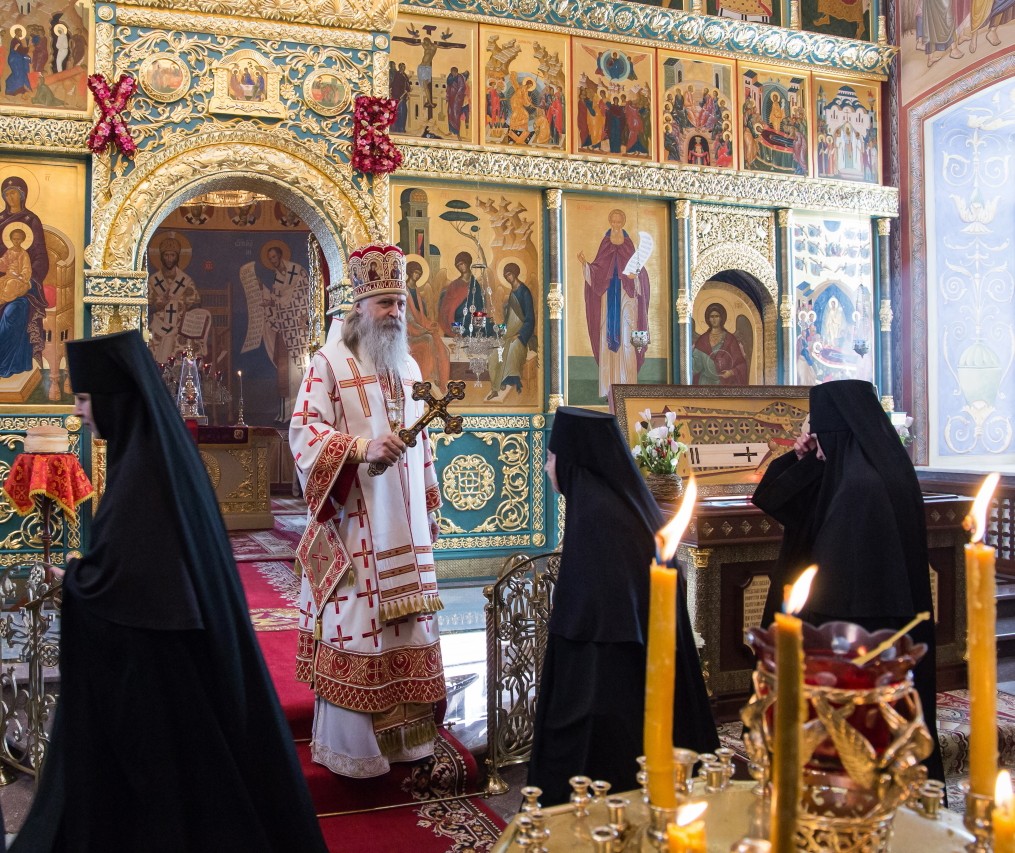 В светозарные дни Святой Пасхи владыка Феогност возглавил Божественную литургию в Троицком храме монастыря.